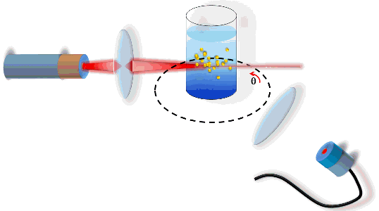In this technique, the suspension is illuminated by a laser beam and the fluctuations of the scattered light from particle is random motion are detected, at a known scattering angle θ, by a fast photon detector. Hydrodynamic diameter of the suspended particles is obtained by calculating the auto correlation functions of the time dependent intensity fluctuations. Multi-angle instruments can determine the full particle size distribution. And the same technique can provide zeta potential (surface charge) of the particles using the electrophoretic light scattering and laser doppler method.