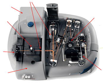 Optical Design: Double Beam with sample and reference cuvet positions; Application Focused Beam Geometry;